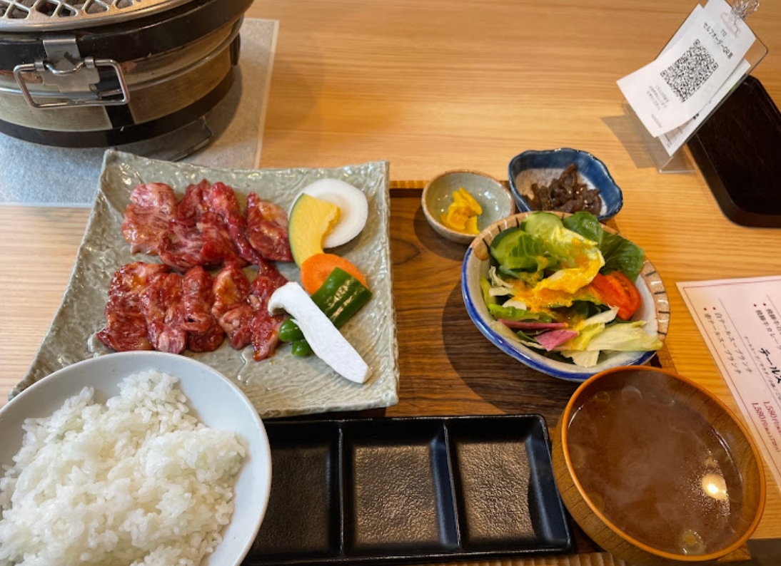 こちらは、「カルビ焼肉御膳 ¥2,068(税込)」。「丸明 茶屋ヶ坂店」さんのランチメニューは、高級飛騨牛をセットメニューでリーズナブルにいただけるのでおすすめです。