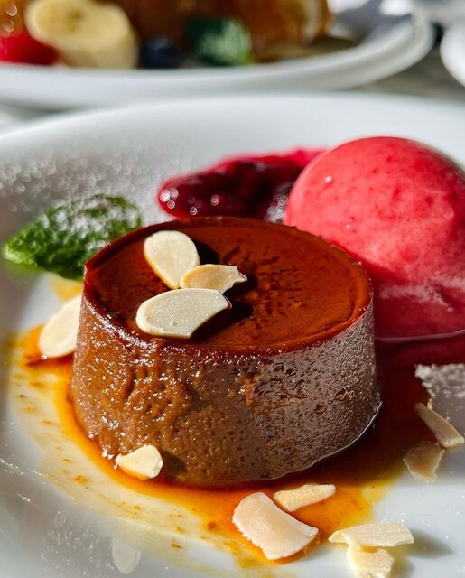 こちらは「チョコプリン¥580(税込)」。甘さ控えめのチョコプリンは、添えられたベリーアイスとも相性抜群です!