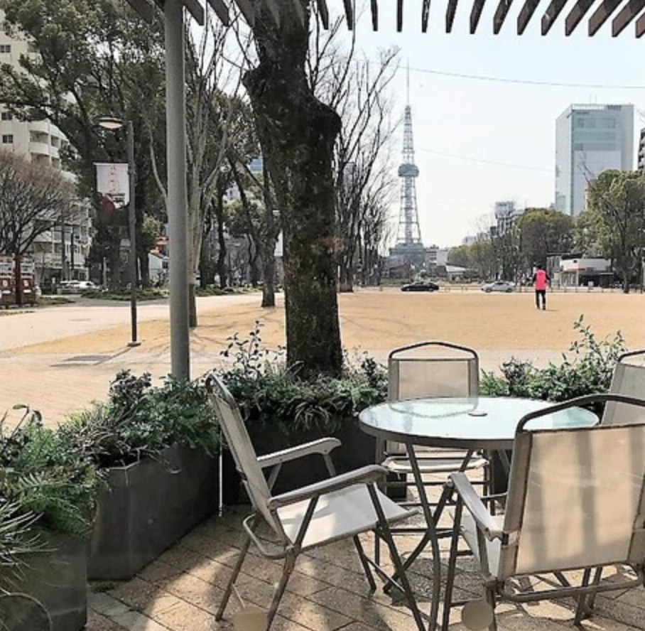 「名古屋天狼院(てんろういん)」は、久屋大通パーク最北端にお店を構える書店併設のカフェ。自然も豊かで、名古屋のシンボル・ミライタワーを望むことができます。