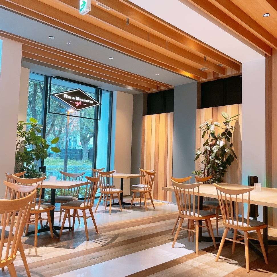 「RIB&BAGUETTE(リブアンドバゲット)」さんは、久屋大通パークzone2の西側にある、ホテルアンドルームス1階にに併設のカフェ。