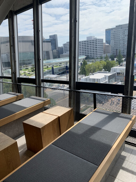 ミライタワーの3階にある「ベースラボ」さん。全面ガラス張りでとても明るく、開放感バツグンの空間。久屋大通を望むことができる絶景スポットです。